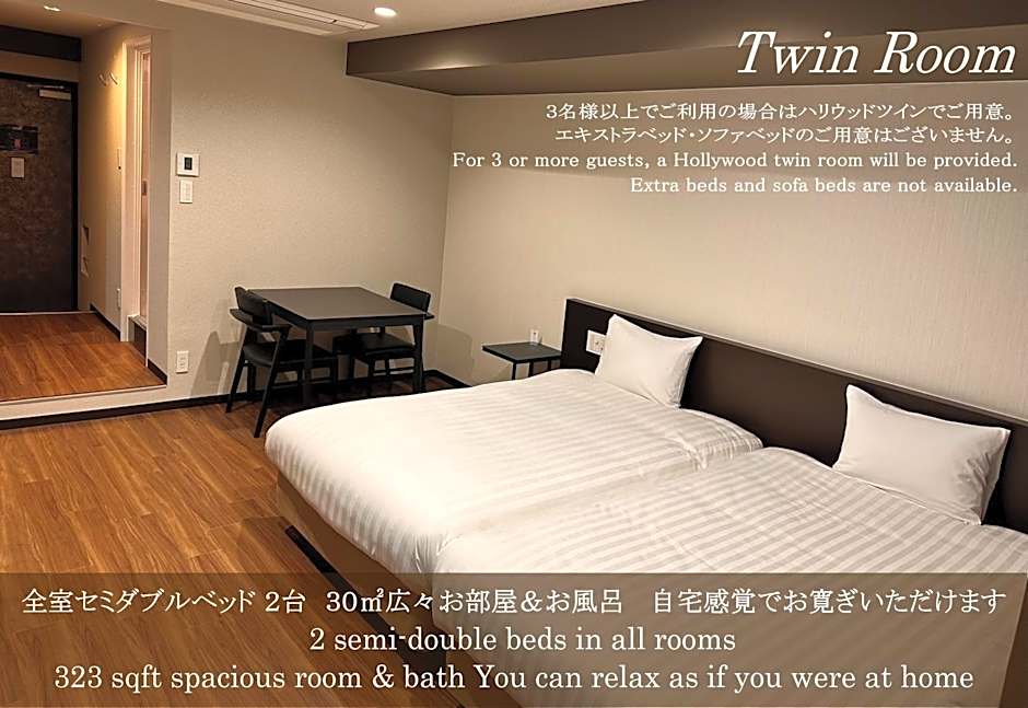 The spacious twin room provides air conditioning, a tea and coffee maker, as well as a private bathroom featuring a bath and a shower. The twin room offers a wardrobe, a sofa, yukata, heating and a flat-screen TV with streaming services. The unit offers 3 beds.